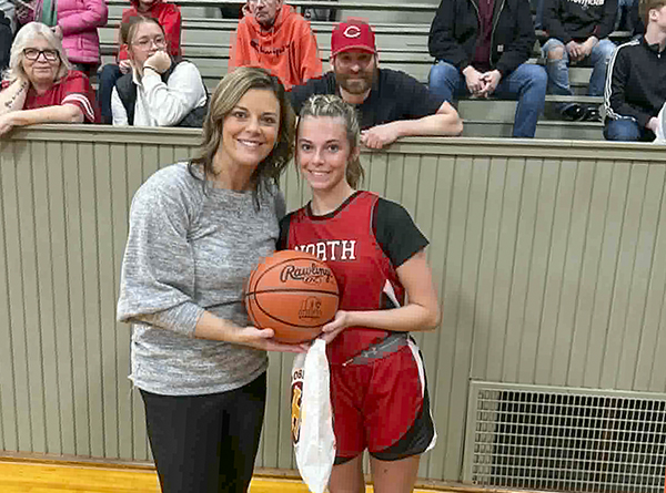 It didn’t take long with Bella dribbling to her left outside the arch using a screen set by junior center Cadence Darnell, the defender went under the screen and Bella took advantage, set her feet and let fly a three-point shot that was all net to put her over the 1000-point plateau.