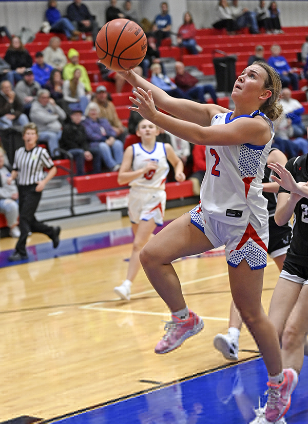 Senior Brooklynn Seubert had 15 of the Mississinawa's 48 rebounds the played a big role in their win over Tri-Village. (Dale Barger photo)