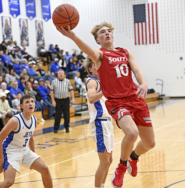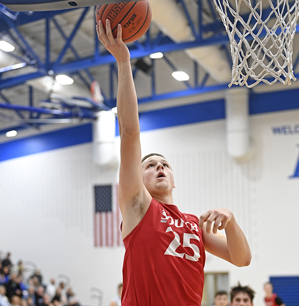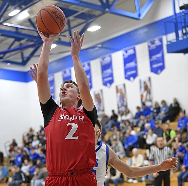 South senior Aiden White can run the offense and also get to the rim and had two lay-ups in the second quarter. (Dale Barger photo)