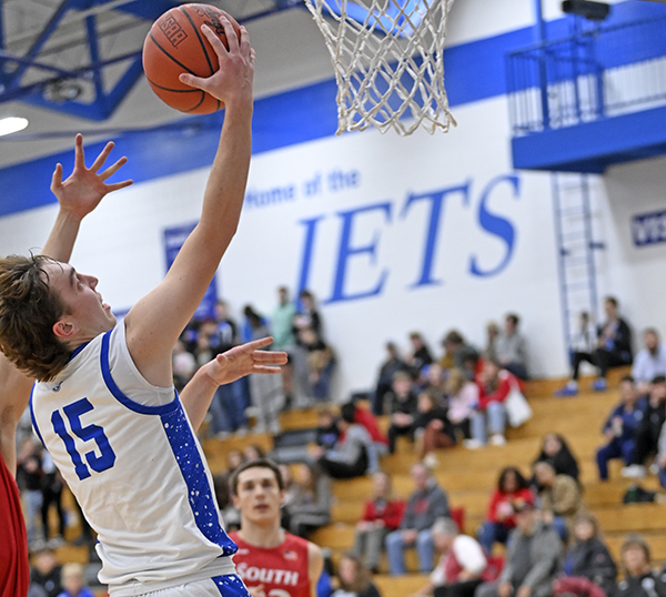 The Jets senior Lucas Brenner made the tough buckets when the team needed it and had 23 points in the game to lead all scorers. (Dale Barger photo)