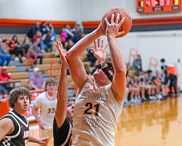 Cold shooting by National Trail led to a 24-12 deficit at the break. The only thing the Blazers had going for them was the play on the inside from senior Tayden Blevins who accounted for 10 of their 12 points.
