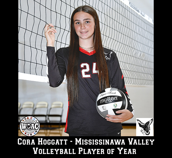 Mississinawa Valley’s Cora Hoggatt would be named the WOAC Volleyball Conference Player of the Year. Cora has been a standout player for the Blackhawks with a solid all-around game adept with her jump serve (62 aces) leading the WOAC. Kills on the front line (205) 5th in WOAC and ability to distribute balls all over the court with 573 digs and 2nd in the league passing.