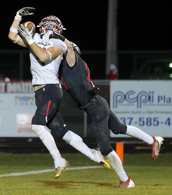 Arcanum freshman Raysean Miles had this catch called out, he caught the next pass to score a touchdown to end the first half.