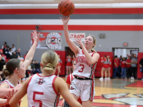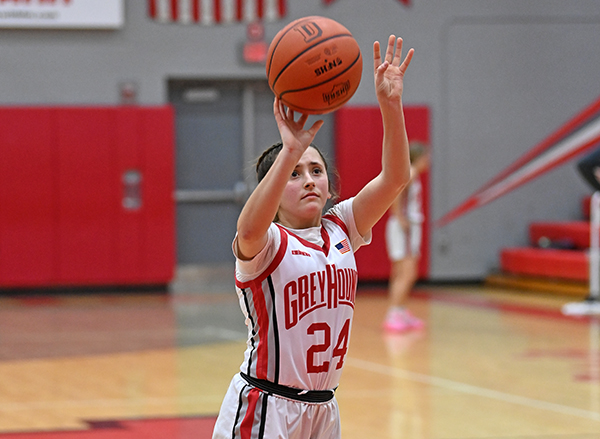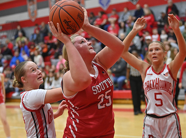 Sophomore Jacie Hartmier hit some big free throws to help the Greyhounds down the stretch in win over South.