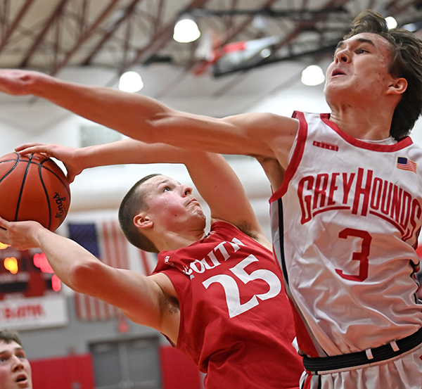 NEW LEBANON – Twin Valley South boys basketball trailed Dixie at the half but gradually pulled away in the 3rd quarter, fought off a couple small Greyhound runs on their way to 59-45 WOAC win.