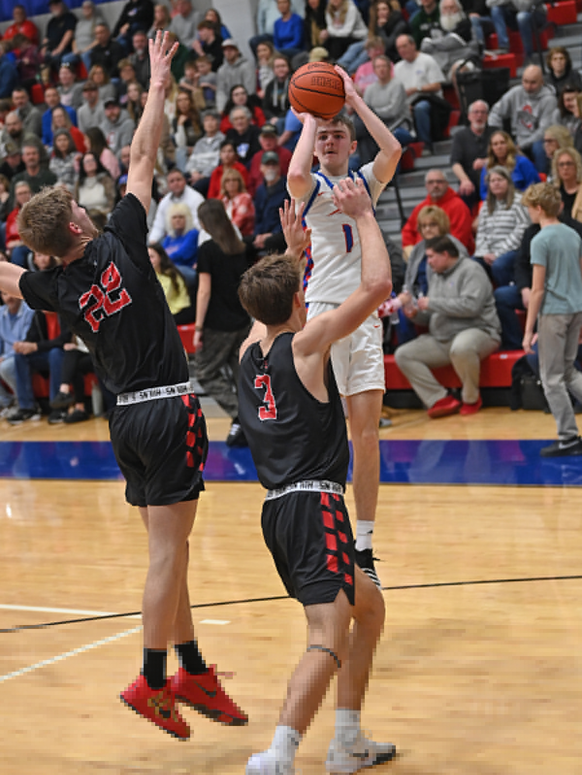 “To have guys like Griffin Richards and Brecken Gray in a big environment like this knock down shots for us to start the game was big,” Tri-Village coach Josh Sagester said on the first quarter start.