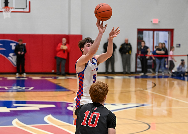 NEW MADISON – It was undefeated Preble Shawnee and Tri-Village boys basketball playing for a WOAC league championship Friday night for the fifth year in a row. The Patriots would roll in this one with efficient offense and stifling defense for a 55-20 win to claim back-to-back league titles.
