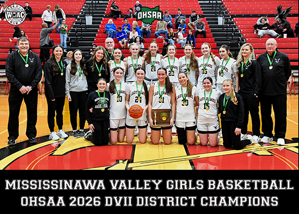 NEW CARLISLE – The Mississinawa Valley Lady Blackhawks handily defeated the Middletown Christian Lady Eagles of the Metro Buckeye League 63-39 to capture the OHSAA Division VII District Championship.