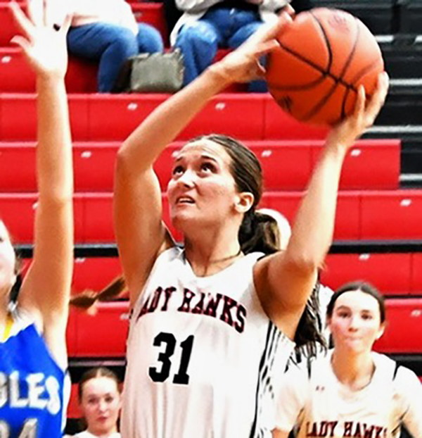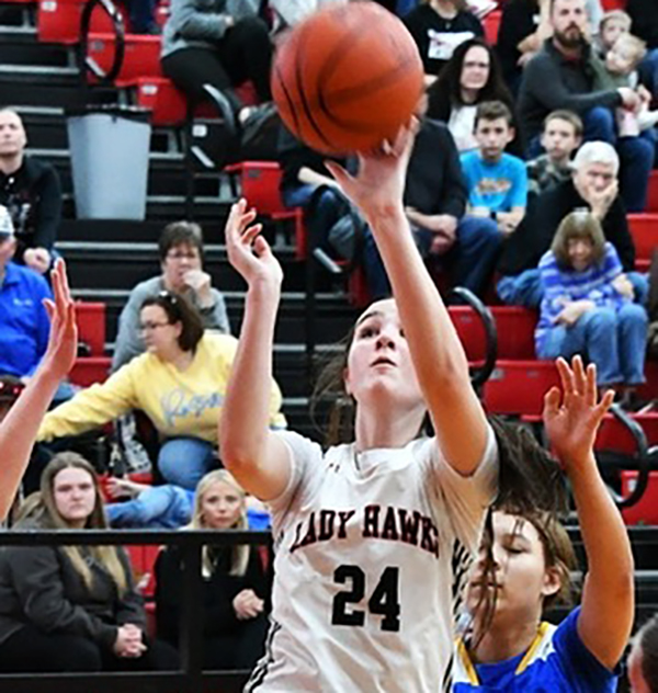 WOAC Player of the Year Brooklynn Seubert led the Lady Hawks and all scorers with a game-high 16 points.