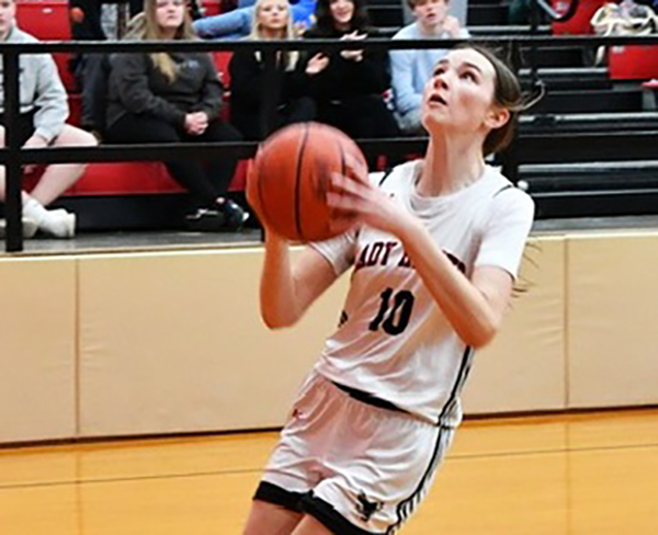 Brooklynn Seubert and Cora Hoggatt led the way with 10 points each, Makenna Hoggatt had 9, Cassidy Seubert 8, Paige Emrick 6 and Lilly Geesaman 5.