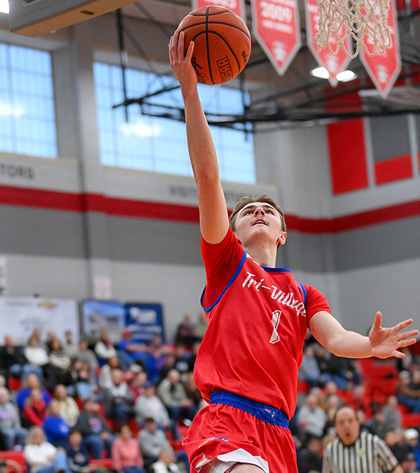 TROY – The Tri-Village boys basketball team dispatched Miami Valley in a 2nd round OHSAA DVI tournament game 79-34, that also saw Trey Sagester surpass 2000 career points.