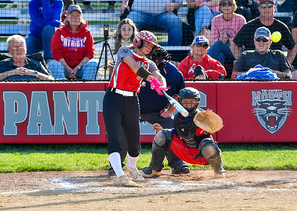 Tri-County North sophomore Lola Grieshop sent one into the corn, a 3-run blast that tied the game in the 3rd inning.