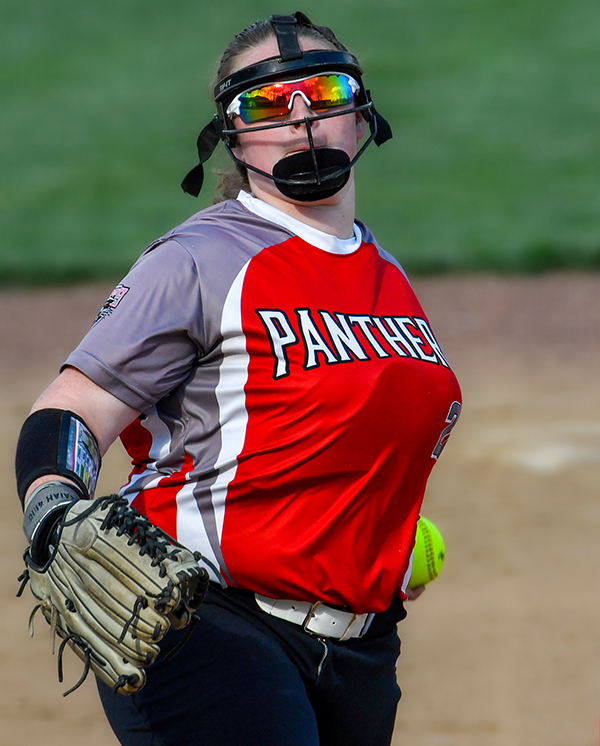Senior Abby Klingshirn throws in relief in game vs Tri-Village.