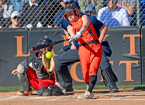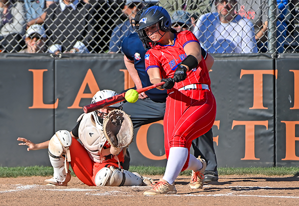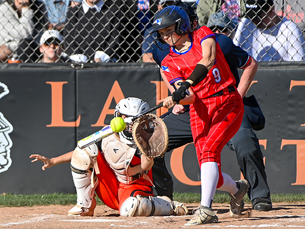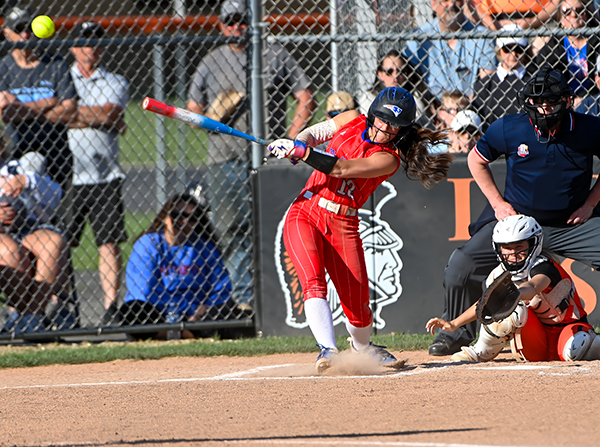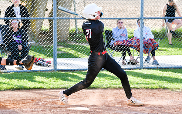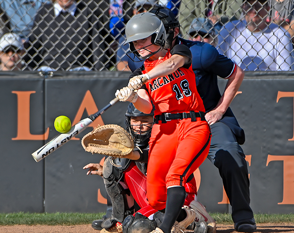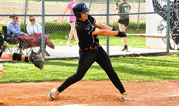 Aereonna Baker turns on an inside pitch lacing a double down the left field line in win over Arcanum.