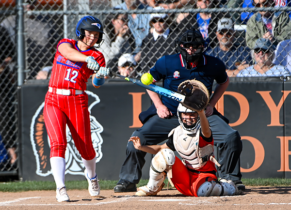 Elizabeth Poling added to the Patriots lead with a 3-run homer over the right field wall in the top of the 7th inning to go up 11-3.