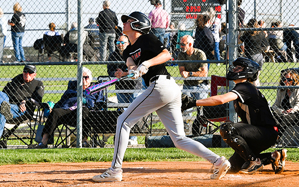 Twin Valley South's Andrew Johnson hits the game winning RBI as the South earns a 5-4 win over rival Tri-County North.