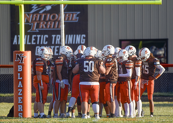 National Trail’s Football team gets ready to take field before a game. The Blazers are a finalist for an opportunity to win a 1 Million Dollar Field Renovation.  (Dale Barger Photo)