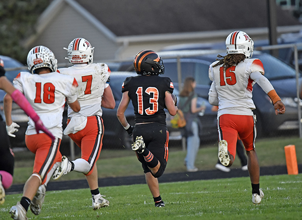 National Trail saw the #13 often as they chased MJ Macy all night.  He ran for 3 TD's of 82, 65 and 52 yards. (Dale Barger photo)