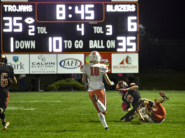We were fortunate to get some big plays said Macy whose line was still a bit banged up from their physical game with Preble Shawnee last week, who handed the Trojans their only loss this season.