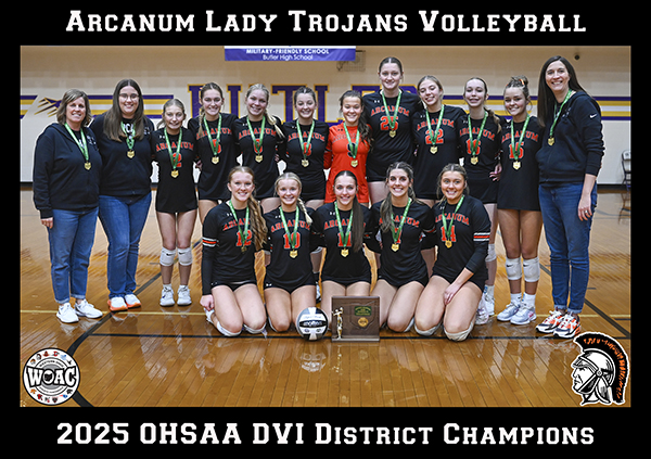 VANDALIA – The Arcanum Lady Trojans made history Saturday, sweeping the Cincinnati Country Day Lady Knighthawks to capture their first OHSAA district volleyball championship in 43 years.