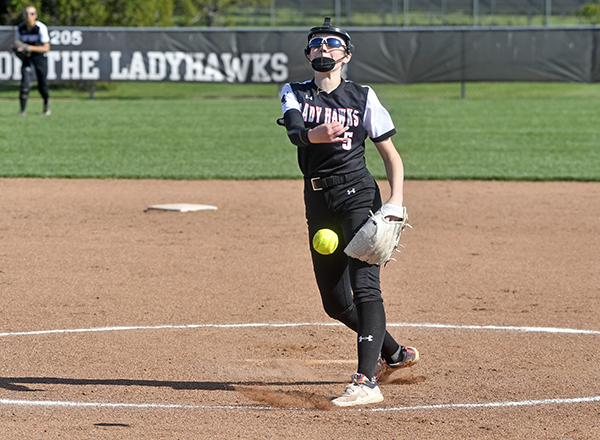 Senior Paige Emrick would lead all scorers in the game with 19 points for the Hawks in big win over Tri-Village. (Dale Barger photo)